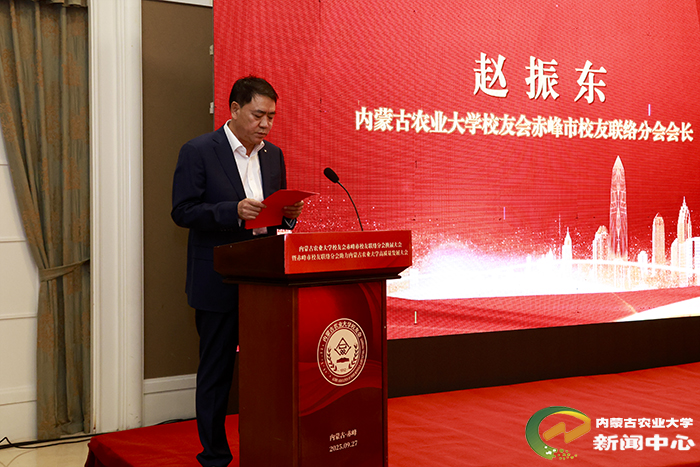 陈永胜在致辞中向赤峰市校友联络分会顺利换届表示祝贺,并介绍了学校近年来围绕争创“双一流”建设高校发展目标取得的系列成绩。他说,校友是母校最靓丽的名片,也是学校事业发展最坚实、最可信赖的力量。赤峰校友在现代农牧业、特色文旅等领域深耕多年,以实际行动诠释了校训精神,为地方经济社会发展作出贡献,也为母校赢得了荣誉。他强调,赤峰“十大行动”中的多个项目与学校优势契合,校友发展空间广阔,学校将持续支持校友成长与发展。他希望新一届赤峰校友联络分会充分发挥桥梁纽带作用,持续充实校友信息库、挖掘校友资源,搭建校友交流合作平台,为母校争创“双一流”高校贡献力量。