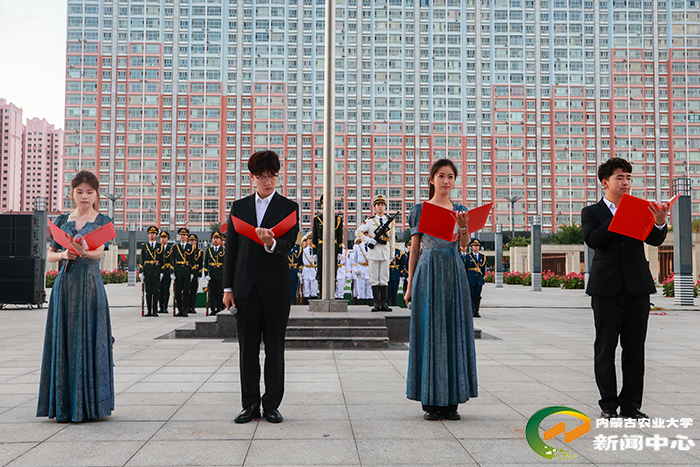 升旗仪式后,学生代表深情朗诵诗歌《致敬先烈,强农报国》,以铿锵有力的声音、饱满昂扬的激情,表达了对祖国壮美河山的赞美和对英烈的崇高敬意。随后,8名同学共同唱响《英雄赞歌》与《我和我的祖国》,动人旋律感染全场。
