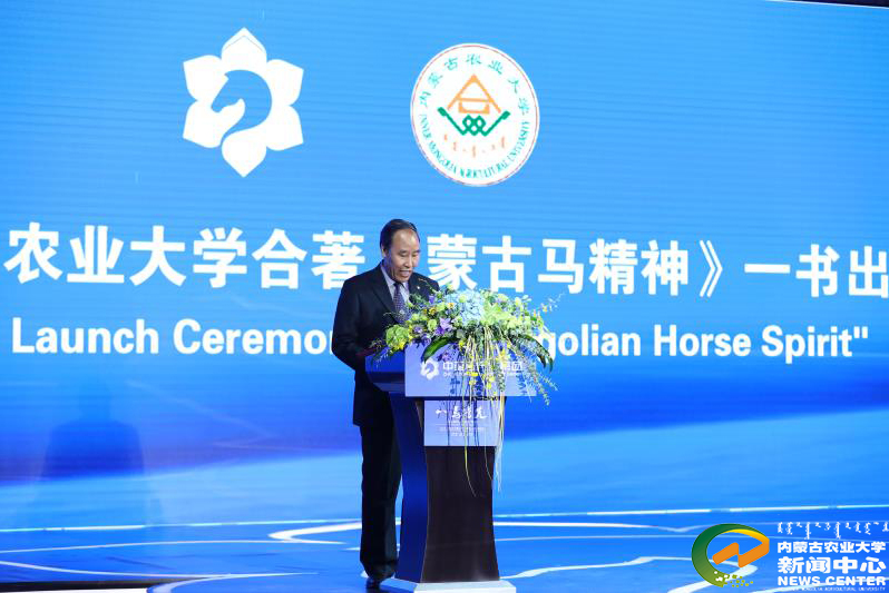 启动仪式上,芒来介绍了《蒙古马精神》的写作背景、书籍内容、撰写过程等。他说,本书高度凝练了蒙古马精神的实质内涵,是认真贯彻落实2014年1月26日——28日习近平总书记在视察内蒙古自治区时提出的“蒙古马精神”的具体体现。该书分为四章内容,即蒙古马精神的孕育与形成、蒙古马精神的基本内涵、蒙古马精神的时代意义、蒙古马精神的培育与践行,是我校马属动物研究中心与内蒙古中蕴马产业集团历经3年努力完成的科研成果,是对蒙古马精神研究的全面总结。
