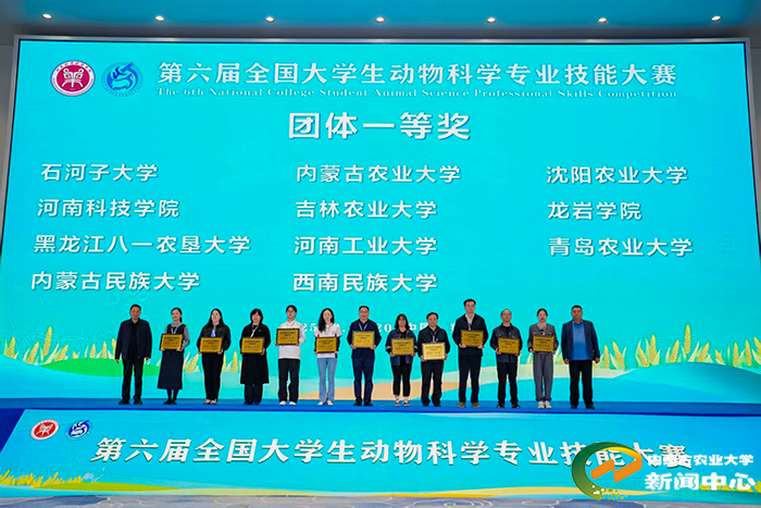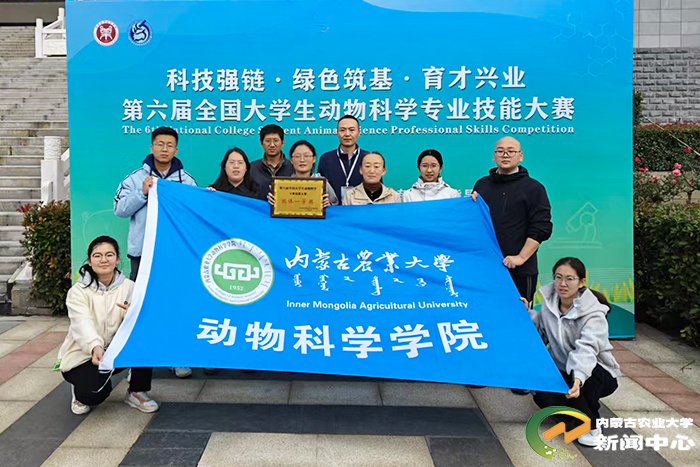 10月18日至19日,第六届全国大学生动物科学专业技能大赛在河南牧业经济学院举办。由动物科学学院苏蕊老师带队,徐元庆、哈斯额尔敦、郭晓宇、王园担任指导教师,2023级动物科学专业学生段鑫、张怡、刘静茹、董智勇和2022级学生郭子昌等5名学生组成的代表队获得团体一等奖。