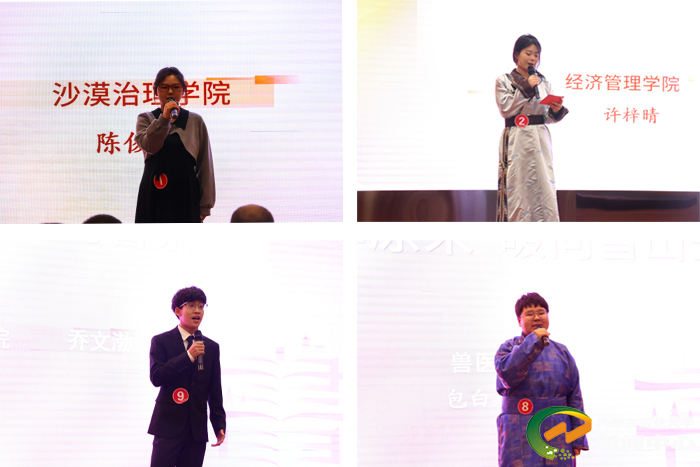 经过激烈角逐,人文社会科学学院王博凯荣获一等奖,农学院乔文渤和经济管理学院许梓晴获二等奖,沙漠治理学院陈俊蕾、计算机与信息工程学院王佳和材料科学与艺术设计学院王艺璇获三等奖,其余八名选手获得优秀奖。机电工程学院、水利与土木建筑工程学院、经济管理学院、食品科学与工程学院、人文社会科学学院、外国语学院、能源与交通工程学院等七个学院获评优秀组织单位。
