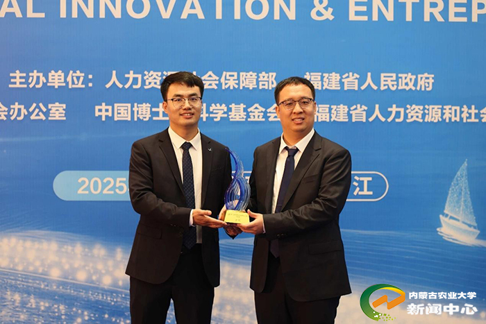 在今年10月28日举行的第三届全国博士后创新创业大赛中,马腾与队友靳昊、李伯海、张猛斩获现代农业与食品赛道金奖,实现自治区在该赛事中金奖“零的突破”。其相关事迹被《人民日报》《工人日报》《中国青年报》、内蒙古卫视等主流媒体报道40余次,展现了学校博士后培养的显著成效与广泛影响力。