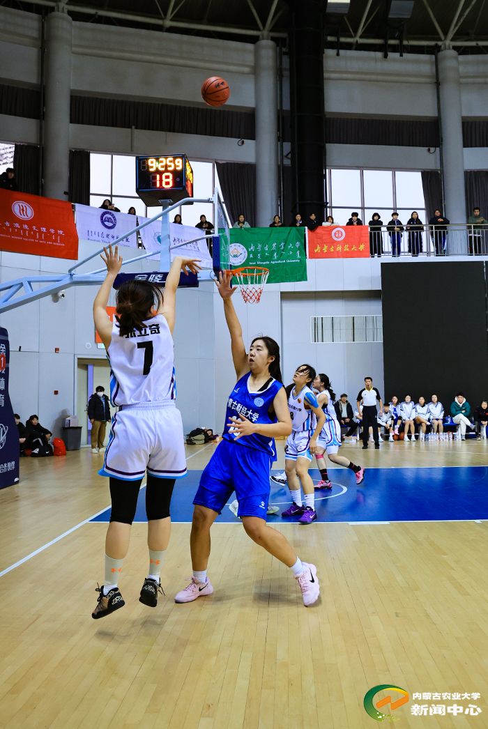 在本届赛事中,我校男篮的卫冕之路诠释了坚韧与拼搏。从小组赛的双加时鏖战,到半决赛的末节逆转翻盘,球队经受住了重重考验。决赛对阵实力强劲的内蒙古大学男篮,队员们沉着应对、稳扎稳打,最终以 55:46的比分锁定胜局,成功将冠军奖杯再次收入囊中。我校女篮表现同样令人瞩目。她们自小组赛阶段便展现出强大的实力,以连续的优异战绩一路高歌猛进,强势晋级决赛,最终荣获亚军。