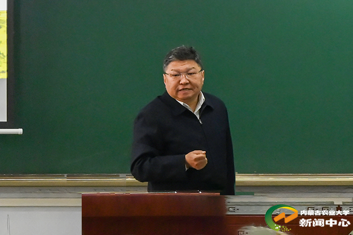 他讲到,“十四五”期间,学校紧紧围绕国家和自治区的发展战略,聚焦创新驱动和人才培养,推动学科融合和技术创新,在农业、生态、畜牧和食品科学等领域取得了一系列创新性成果,学校的办学质量与社会影响力有了大幅跃升。例如,在 2024 年度内蒙古自治区科学技术奖评选中,学校牵头完成的成果实现获批奖种与数量“双增长”的亮眼成绩。面向未来,学校将全面贯彻落实习近平总书记关于内蒙古的重要讲话指示精神,围绕“两个屏障”、“两个基地”、“一个桥头堡”的战略定位,加强内涵建设,提升教育质量,全方位推动学校晋位升级、冲击“双一流”,为建设教育强国、农业强国和内蒙古的高质量发展贡献智慧力量。