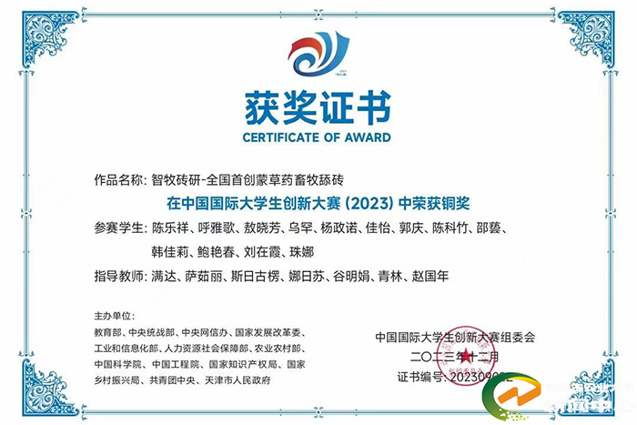 学院以学科建设为龙头,以人才培养为根本,科教融汇、产教融合,培养拔尖创新型和复合应用型人才,为国家和自治区畜牧业高质量发展夯实人才根基。按照“新农科”建设和畜牧业转型升级需求,增设智慧牧业科学与工程本科专业,拓宽办学领域,提升办学活力。学院通过以赛促教、以赛促学,提高教师教学水平和人才培养质量。获自治区高校教师教学创新大赛一等奖1项、二等奖1项;获全国研究生乡村振兴案例大赛特等奖1项,全国“牛精英”挑战赛一二三等奖各一项,全国大学生动物科学专业技能大赛团体一等奖2项、单项特等奖1项,中国国际大学生创新大赛铜奖2项,自治区创新创业大赛各类奖项17项,人才培养质量显著提升。