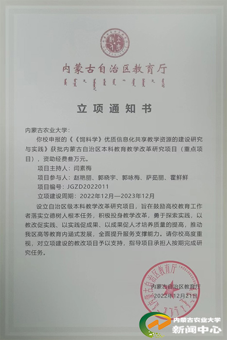 学院围绕自治区优势和特色畜种产业发展需求,强化团队建设,获批教育厅科技创新团队1个、自治区草原英才创新团队1个,2个团队入选自治区第一批“英才兴蒙”工程团队项目支持,为学院创新发展注入强劲持续的团队动能。