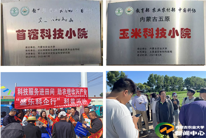 学院建有纳入三部委等体系的科技小院3个。2023年获自治区“十佳助农”等称号,小院培训500余人,推广种植2万余亩,“无底肥”技术亩增收50-150元、减投化肥50-100元;2023年任内蒙古土壤肥料学会理事长单位,年均技术咨询超5000人次,近五年转化成果3项,转化金额50万元,带动近10万人增收,为自治区农业发展与乡村振兴助力。