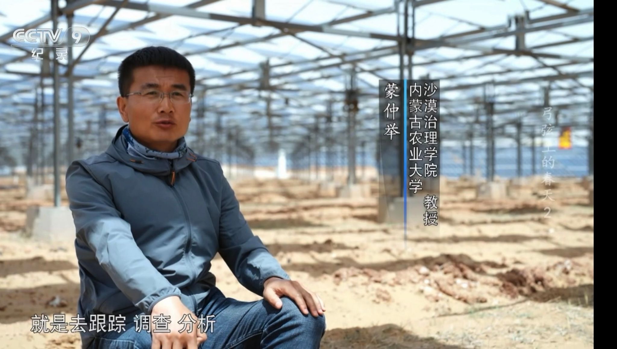 CCTV9《弓弦上的春天》第一、二集,生动记录了我校教师团队以“科技赋能,系统治理”为主题,呈现了我校教师在荒漠化防治领域的多维创新实践。其中,沙漠治理学院教授蒙仲举立足生态安全与能源发展需求,聚焦光伏电站的沙害防治难题,创新构建了“光伏阵列防风固沙”技术体系。通过将光伏基础设施与生态治理的有机结合,形成了“以光锁沙、以板固土”的协同机制,既有效促进了地表植被恢复与风沙控制,又实现了生态保护与绿色能源产业的深度融合与共赢发展,为干旱区可再生能源项目的可持续建设提供了可复制、可推广的系统解决方案。沙漠治理学院教授郭月峰则秉持生态治理初心,扎根沙区一线,专注研究荒漠植被与土壤系统的协同恢复。她带领团队基于乡土植物筛选与生态适应性原理,通过科学的植被配置与生境调控,激发植物自身抗逆性与群落演替潜力,从而推动沙地生态系统实现从“人工干预”到“自主恢复”的可持续转变,为干旱区生态修复提供了可操作的技术路径与实践范式。