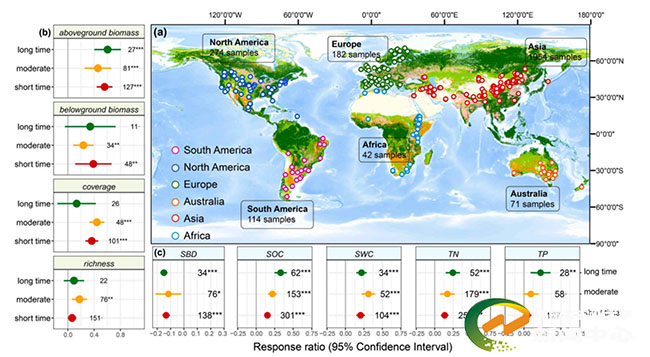 图1 全球范围内禁牧对植被和土壤功能的总体影响。