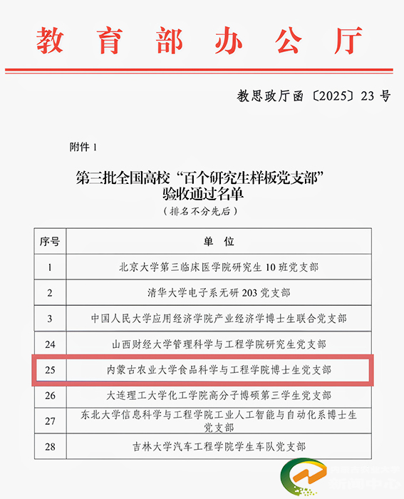 近日,教育部办公厅正式公布《第三批全国高校“百个研究生样板党支部”创建培育工作验收通过名单》。经过为期两年的培育建设,我校入选的研究生样板支部——食品科学与工程学院博士生党支部顺利通过验收。