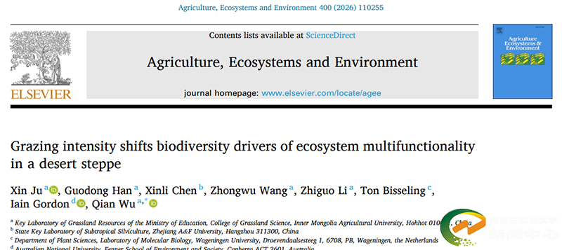 论文第一作者为我校草业学院草学学科博士后鞠馨,韩国栋教授团队青年教师武倩为通讯作者。我校特聘教授、战略科学家Ton Bisseling院士、浙江农林大学陈信力教授、澳大利亚Iain James Gordon教授和我校王忠武教授、李治国教授参与本项研究工作。本研究受内蒙古自治区自然科学基金优秀青年基金项目(2025YQ019)、国家自然科学基金项目(32192463、32460351)和内蒙古自治区“揭榜挂帅”项目(2024JBGS0011)的资助,并得到内蒙古自治区农牧业科学院四子王科研基地的支持。