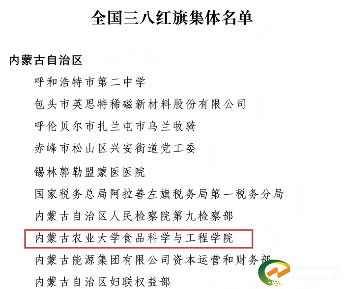 近日,全国妇联公布了2025年度全国三八红旗手标兵、全国三八红旗手、全国三八红旗集体、全国巾帼文明岗评选结果,我校食品科学与工程学院荣获“全国三八红旗集体”称号。