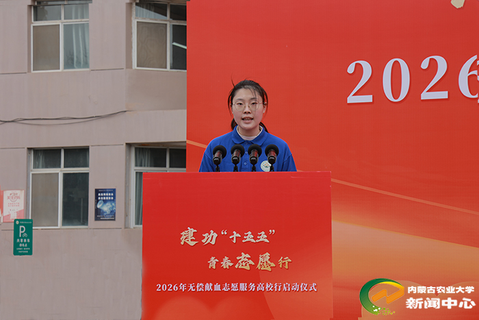 陆海平在致辞中表示,无偿献血是健康中国战略的重要支撑,也是青年学生践行社会责任、彰显青春担当的生动实践。我校始终将无偿献血工作融入实践育人与校园精神文明建设,与自治区血液中心合作近四十年,师生累计献血21522人次,献血量位居呼和浩特地区团体前列。学校曾获评全国首个“雷锋大学”、校团委荣获“全国无偿献血促进奖特别奖”,涌现出张猛等先进典型。此次活动是我校无偿献血工作的新起点,学校将紧扣立德树人根本任务,以铸牢中华民族共同体意识为主线,构建全链条工作机制,推动无偿献血志愿服务常态化发展,引导广大青年为健康内蒙古、健康中国建设贡献青春力量。