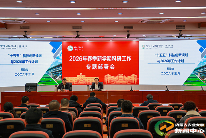 刘永斌在讲话中围绕学校“十五五”科技创新工作作出重要部署。他说,2026年作为“十五五”开局之年,是决定学校未来发展质效的关键之年,自治区科技专项资金较去年增幅较大,重点支持科技创新和产业创新深度融合、教育与科技人才一体化发展、重大科技创新平台建设,为学校科技创新发展带来前所未有的政策红利,学校在种业、草业、乳业等优势特色领域及生物制造、人工智能+等新兴领域均具备抢抓机遇的坚实基础。针对下一步工作,刘永斌提出三点要求:一是认清形势、抢抓机遇,下好“十五五”开局先手棋,全校上下要统一思想,精准对标自治区重点支持方向,聚力发挥优势特色,全力争取承接重大攻关任务;二是深化改革、激发活力,扎实落实科技创新自强卓越工程,各学院要开展科技攻关战略研判,明确制约产业发展的重大科学问题和关键技术问题,将科技创新与学科发展方向相结合,强化科研平台和创新团队建设顶层设计,对标重点攻关方向引育青年人才,深化体制机制改革,将重点科研工作与资源分配、绩效激励等全面挂钩;三是压实责任、狠抓落实,确保科技攻坚各项任务取得实效,各学院要认领任务清单,制定配套落实方案,科技处要建立科学考评“闭环管理”机制,将科研任务完成情况与学院考核、资源配置深度挂钩,确保各项重点任务达到目标要求。